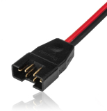 Das ankonfektionierte Kabel wird bei der Herstellung mit einem speziellen Kunststoff bei 220°C und unter 10bar Druck fest verschweißt. Durch dieses Verfahren wird die Kabel-Steckerverbindung dauerhaft versiegelt und zugentlastet. Weder mechanische Belastungen noch Umwelteinflüsse wie Nässe oder Wärme können diese Verbindung negativ beeinflussen. Der Kunststoff ist resistent gegen Vibration, Oxidation, Öle, Säuren, Laugen und Kraftstoffe, außerdem temperaturbeständig von -30°C bis +90°C. Das Kabel besitzt einen Silikonmantel ist damit bestens isoliert und auch bei Kälte sehr flexibel.
