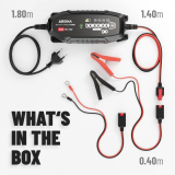 1x Ladegerät mit Krokodilklemmen und zusätzlichem Adapterkabel zur Festinstallation an der zu ladenden Batterie