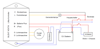 Die Regelung der Bordspannung geschieht weitgehendst unabhängig von der Größe der Batterie. Die volle Spannung von  14,3V  +/- 0,2V  wird nur bei genügend hoher Drehzahl u. optimal geladener Batterie erreicht u. ist nach Einbau des Kontrollers mit einem guten Voltmeter zu überprüfen.