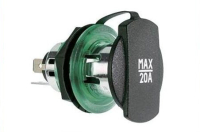 Bordsteckdose nach DIN/SAE Norm (Zigarettenanzünder) mit Steckkontakten 6,3mm außen. Power Steckdose, einsetzbar für hohe Ströme, die handelsübliche Dosen überlasten würden. Einfach zu montieren, mit Schutzdeckel.